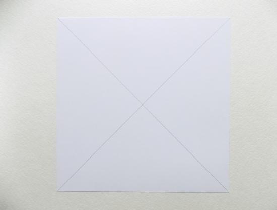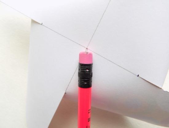 Используемая нами бумага имеет 2 разные стороны, вторая из которых белая. На ней мы будем делать все нужные разметки. Сначала проведем диагональные линии простым карандашом.